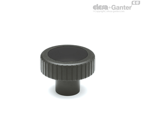 Tecnopolímero de base polipropilénica (PP), color naranja o negro, acabado brillante con superficie central mate, montaje a presión.