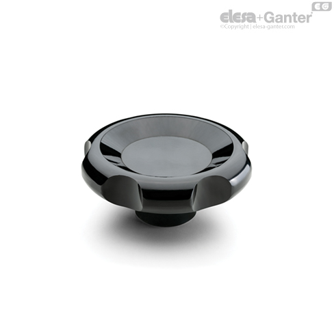 Duroplástico de base fenólica (PF), color negro, acabado brillante.