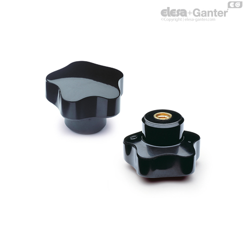 Duroplástico de base fenólica (PF), color negro, acabado brillante.