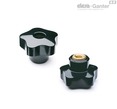 Duroplástico de base fenólica (PF), color negro, acabado brillante.