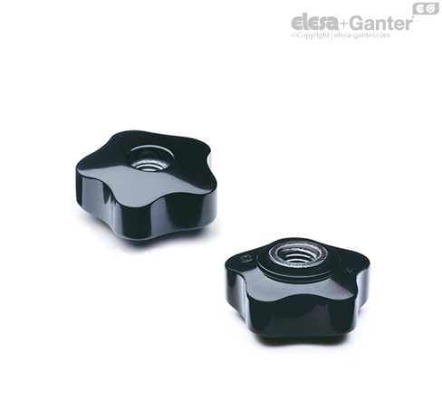 Duroplástico de base fenólica (PF), color negro, acabado brillante.