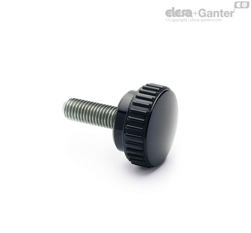 Duroplástico de base fenólica (PF), color negro, acabado brillante.
