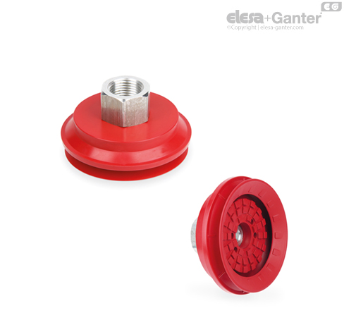 La conformación en fuelle de las ventosas VVC permite que, cuando se produce el contacto con la superficie de la carga, la ventosa se repliegue rápidamente sobre sí misma y se eleve la carga del plano de apoyo.