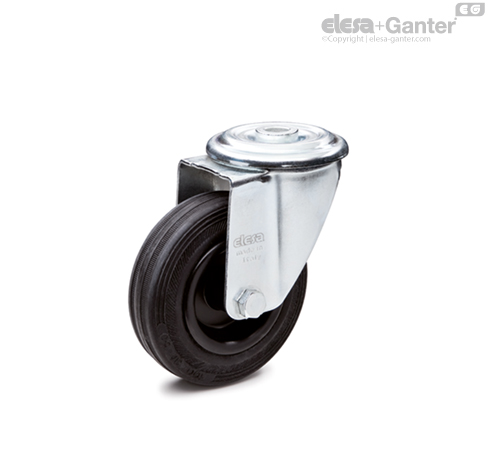 Chapa de acero galvanizado. El soporte está diseñado para soportar cargas de hasta 2250N. Los dos cojinetes y el contacto directo entre la placa y el anillo porta cojinetes con pasador integrado garantizan una excelente maniobrabilidad. No requiere mantenimiento.