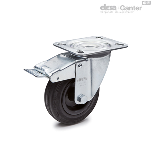 Chapa de acero galvanizado. El soporte está diseñado para soportar cargas de hasta 2250N. Los dos cojinetes y el contacto directo entre la placa y el anillo porta cojinetes con pasador integrado garantizan una excelente maniobrabilidad. No requiere mantenimiento.