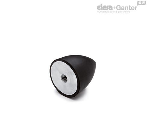 Goma natural NR, dureza 40, 70 tolerancia ±5 Shore A para ejecuciones con base en acero inoxidable AISI 304.